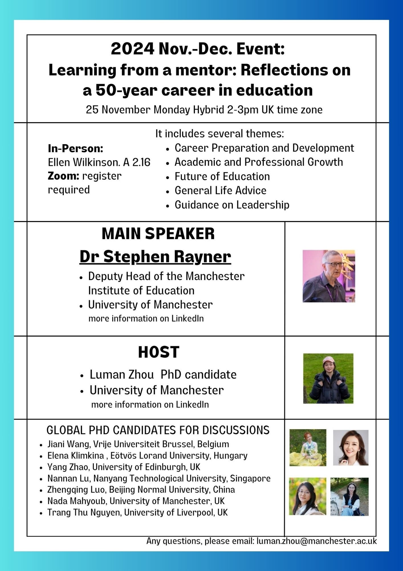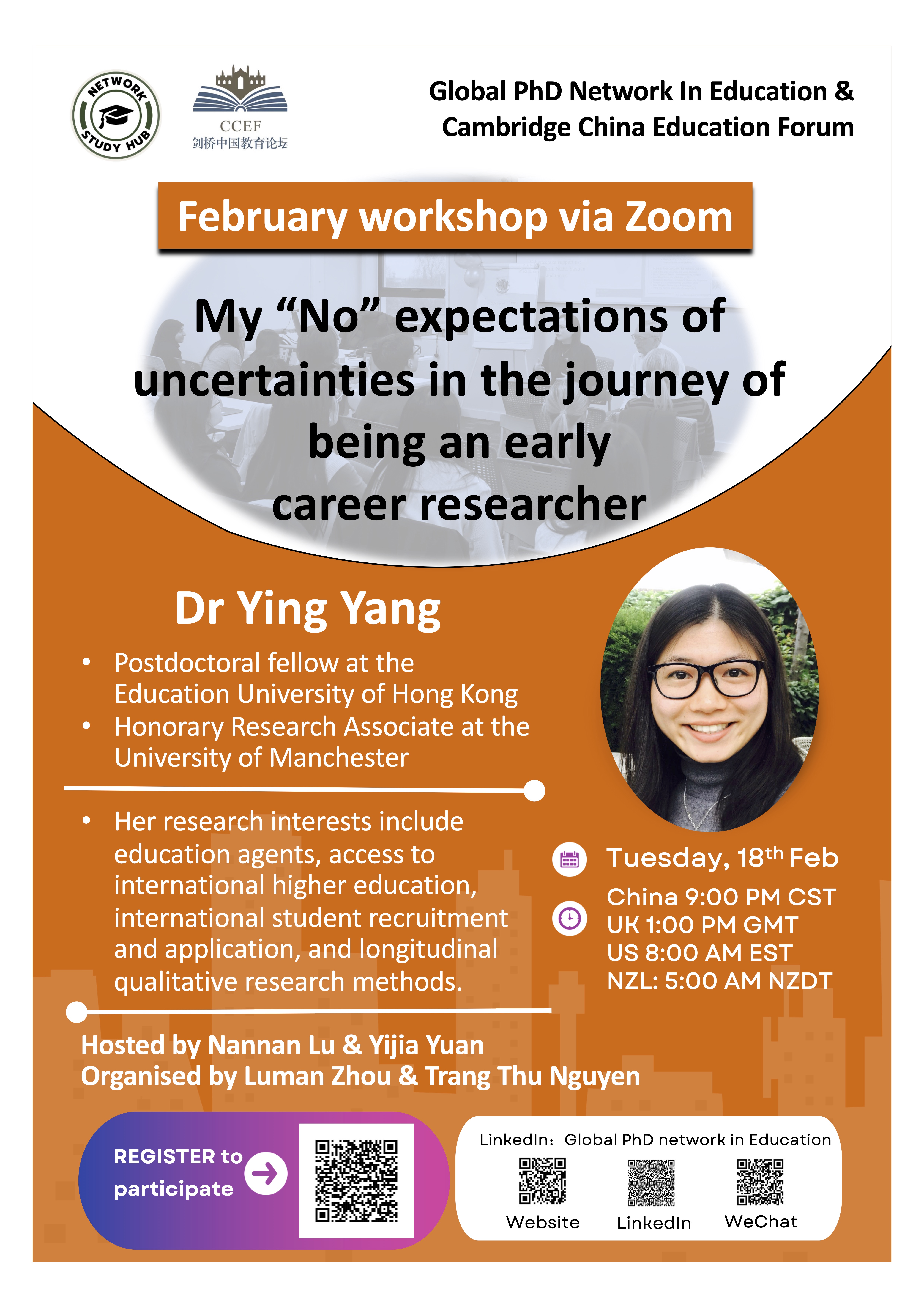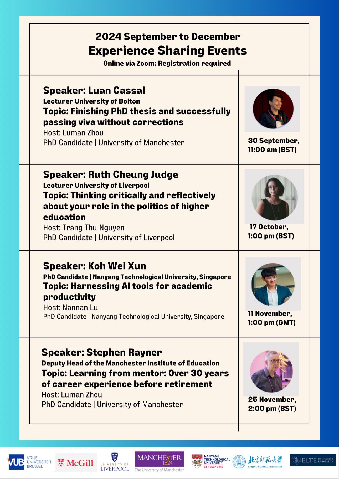 Over the past year, we have hosted more than 10 online and offline events, reaching over 5,000+ Bachelor and PGR students and scholars in education and related subjects. We also supported Harvard Postgraduate Scholars Conference, Cambridge China Education Forum, Nanyang Technological University PGR Conference in Singapore, Durham PGR,Manchester SEED PGR conference etc.
