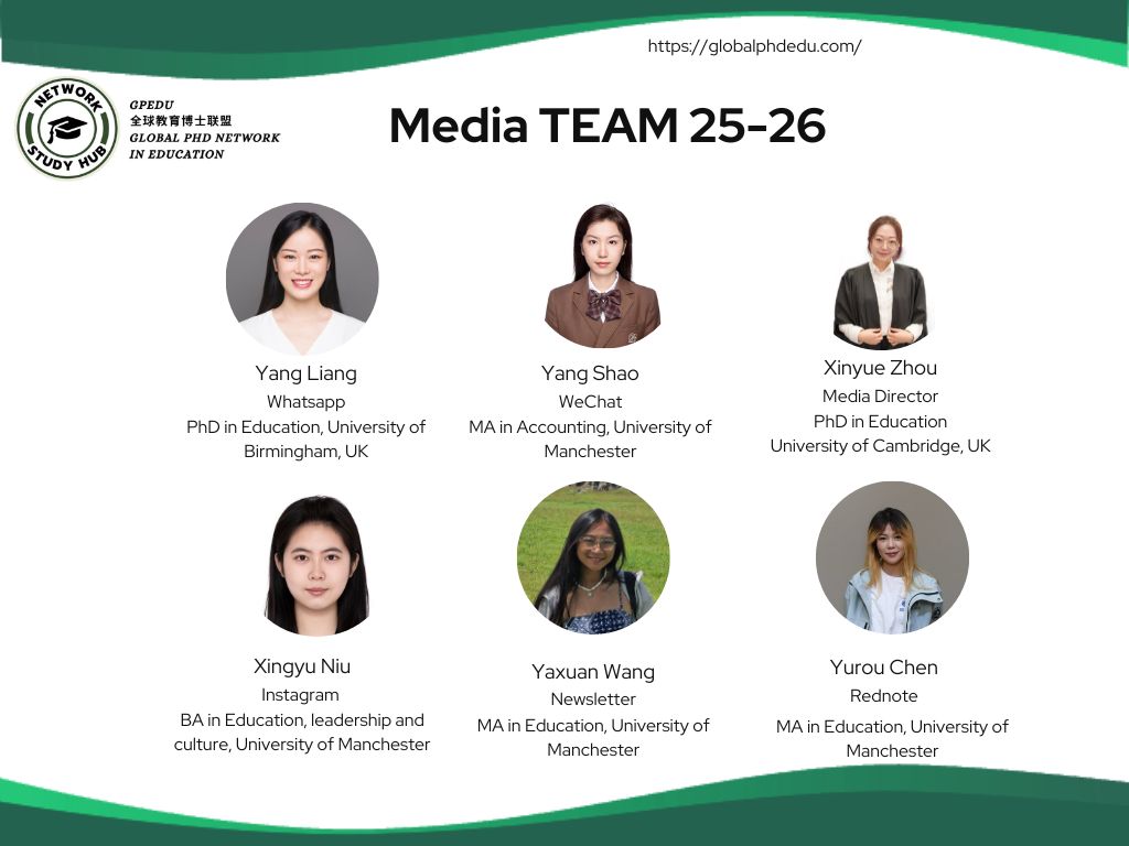 - GPEDU LinkedIn: Global PhD network in Education: https://www.linkedin.com/in/global-phd-network-in-education-9a151b331/